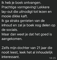 Tot nu toe intrigerende en op sommige dingen kan ik me wel in herkenning in jou mooie boek! ben nog lang niet klaar met lezen maar wil je alvast bedanken voor dit bijzondere boek die je gemaakt hebt! Op sommige vlaktes raakt het mij. Ik wens je mooie dagen lieve Son