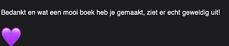 Deze reacties gaan over het binnenkomen van het fysieke boek zelf: het moment waarop het pakket werd geopend, het boek voor het eerst in handen werd gehouden, of de omslag werd gezien. Deze pagina verzamelt die eerste getuigenissen van ontvangst, de woorden die jullie stuurden via berichten, mail en social media, als markering van het moment waarop Van Sterrenstof tot Modder daadwerkelijk bij jullie aankwam. Je vind hier de eerste golf aan reacties, precies zoals jullie ze aan mij hebben doorgegeven.
